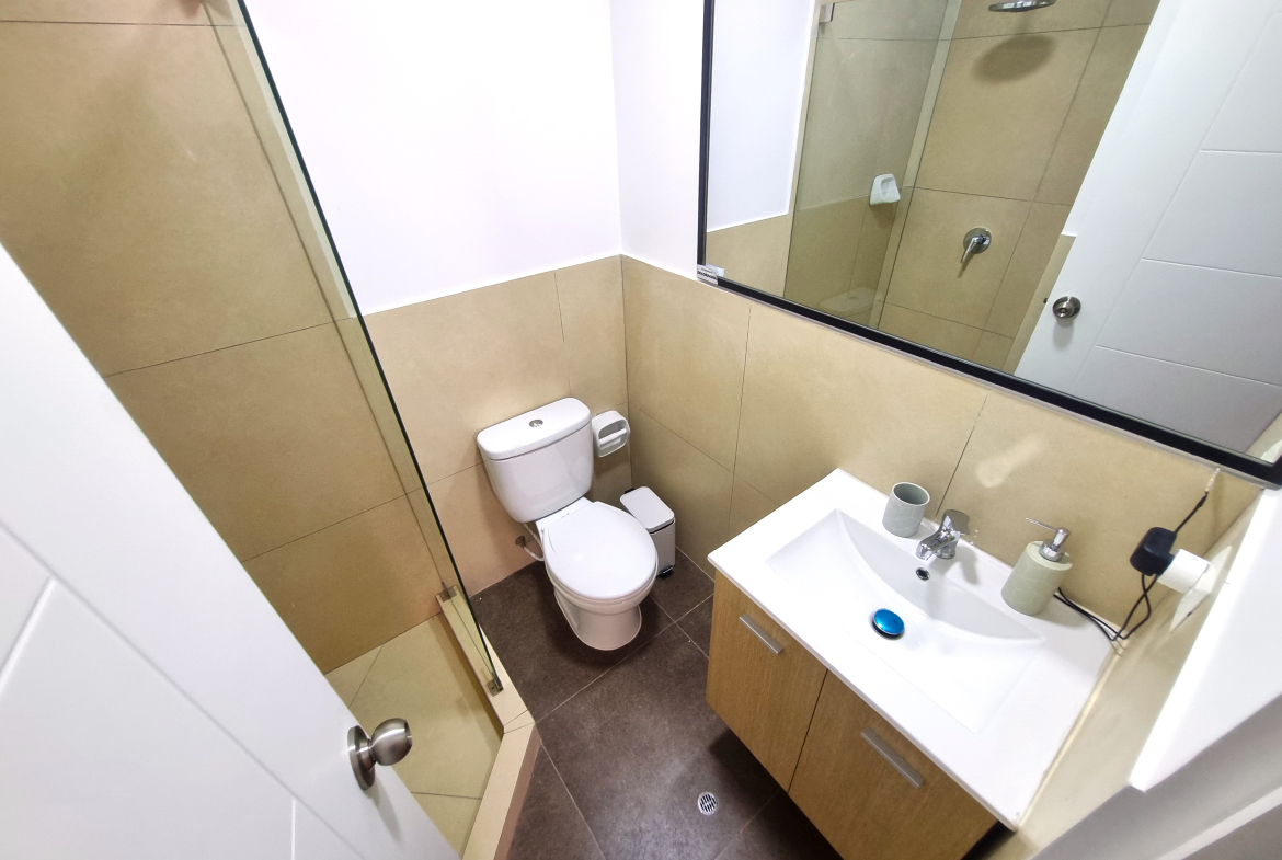 Sala & Comedor y Balcón. Kitchenette con reposteros altos y bajos. Área de lavado. 1 dormitorio principal y 2 dormitorios secundarios. 2 baños completos (uno de ellos pertenece al dormitorio principal).